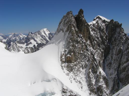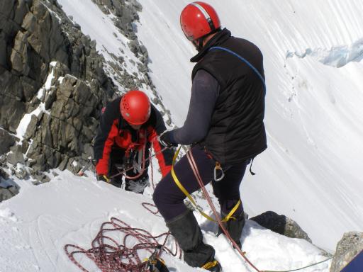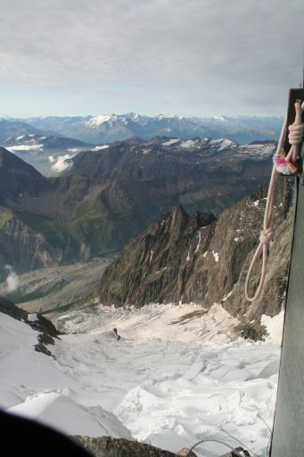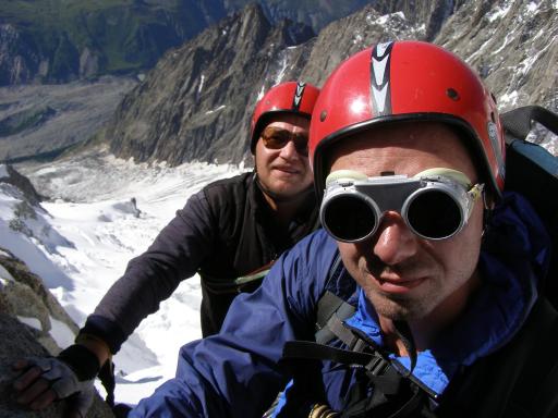 19.–20. 8. +595, -550, Honza, Petr a Jirka výstup na Aiguille Blanche de Peterey 4112 m, bivak v trhlině, návrat
