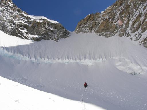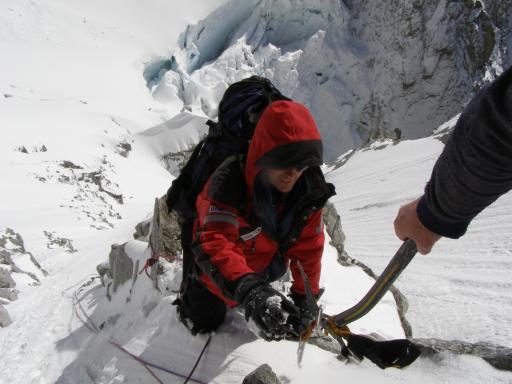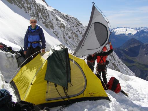 16. 8. +400, -0, pochod a lezení mezi trhlinami, zabydlení v bivaku Grippa