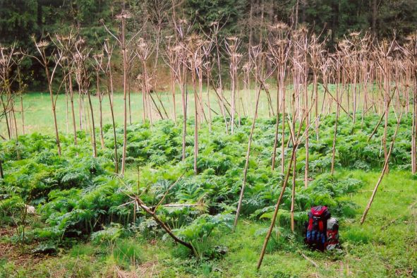 V Libockém dole se u silnice skrývá tajný oddíl bolševníků. Měří kolem 3 metrů. Pod suchými stonky raší letošní generace.