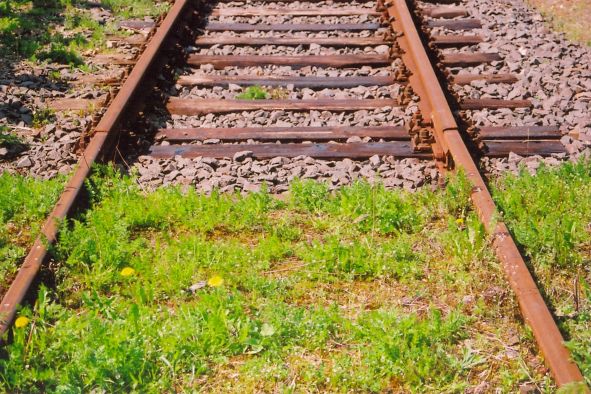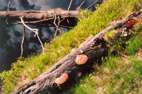 Jdu kolem zrušené zpustlé trati, vedle cesty jsou rašeliniště. Voda která z nich stéká je kalná a jistě zdraví