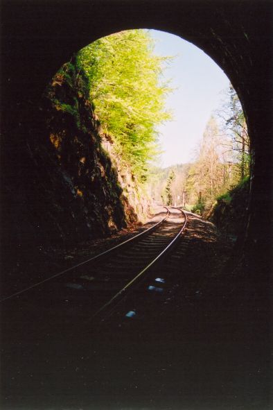 Krásnou krajinou se blížím k vrchu Javorník. Nedaleko tunelu na trati do Potůčků piju vodu z pramene lahodné chuti.