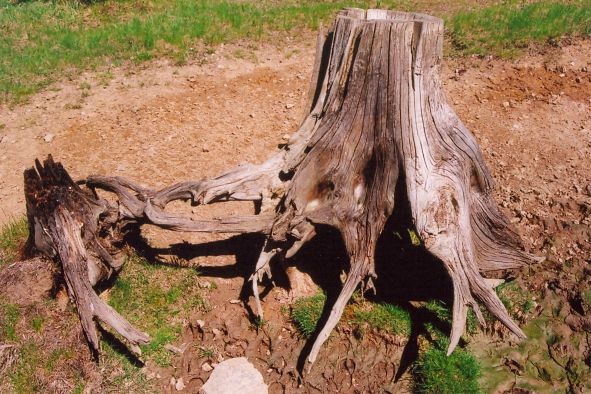 polní cestu. WC. Přicházím do příjemného stínu lesa. WC. Vedle cesty stojí v kruhu otisků kopýtek zvěře dva pařezy.