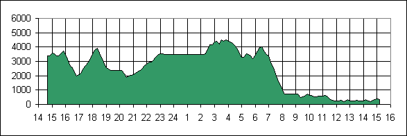 Cuzca do Limy. Autobus během 24 hodin nastoupal celkem 7,5 km a sestoupal 10,5 km. Včetně 3hodinové přestávky